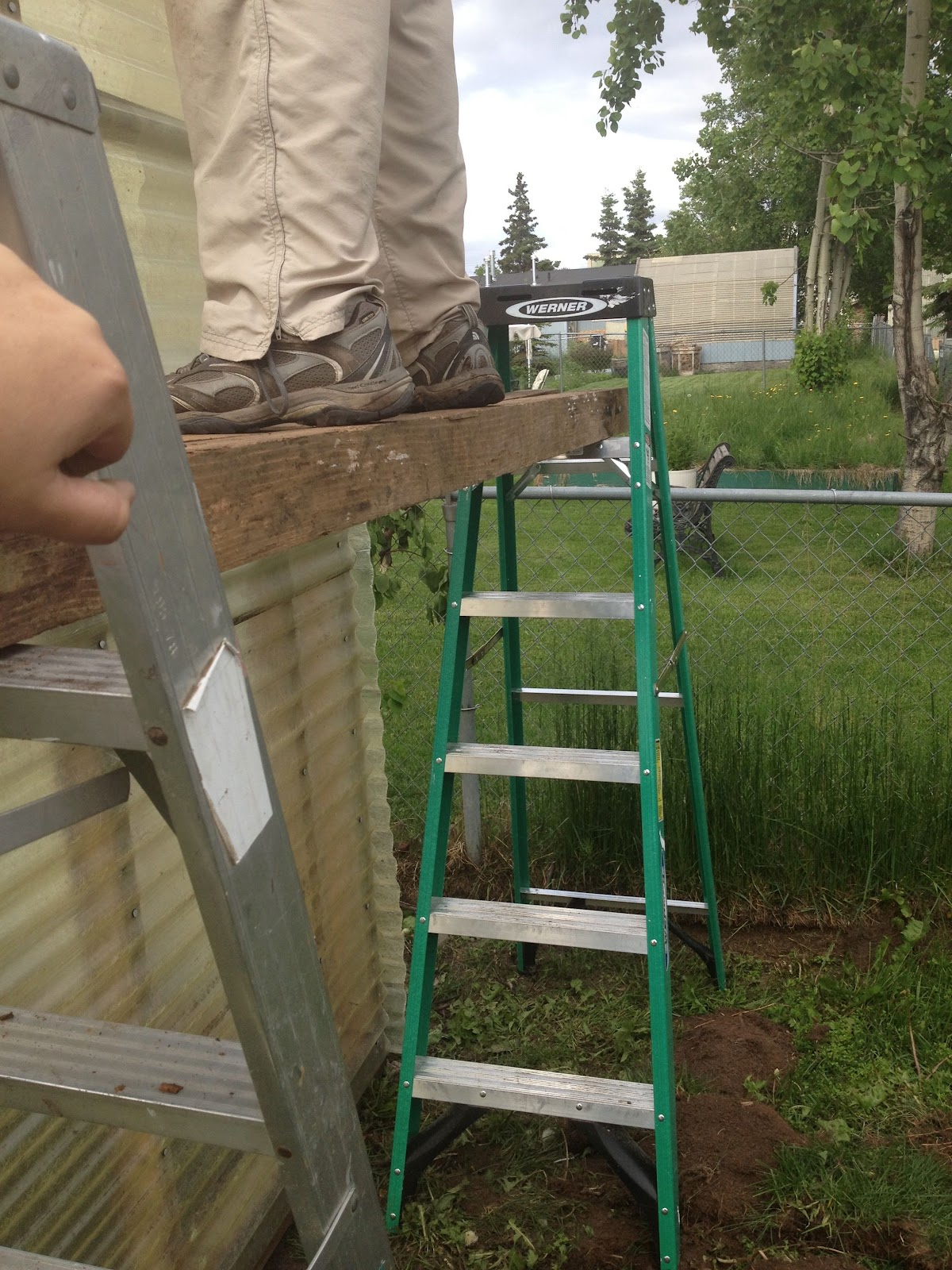 | Most the new materials went into the roof. We used 14 foot 2x4s for the roof so we had a bit of an eve. After seeing the price of lumber, 100 dollars for the greenhouse seemed like a steal. |